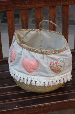 Si és que al Tela Marinera i ha lloc per tots els estils... aquesta cistella tan romàntica i delicada l'ha cosit la Montse i li ha quedat bonica de veritat!!