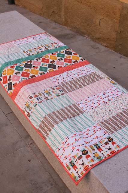 I perquè veieu les coses boniques que es poden cosir amb la col.lecció de party animals que us ensenyava abans, mirem la manta de la Montserrat lo preciosa que és...